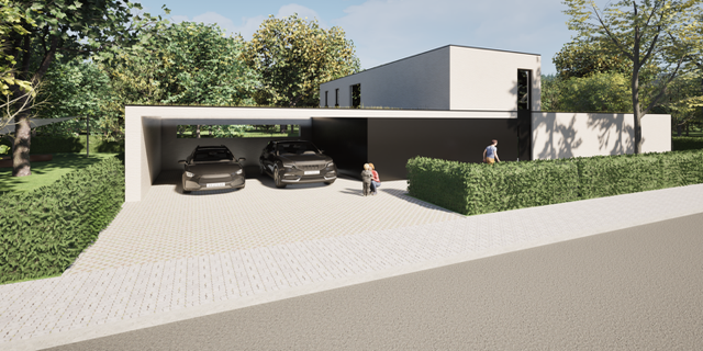 Ce projet de maison contemporaine incarne une esthétique minimaliste résolument ancrée dans le paysage naturel. Conçue comme une véritable respiration architecturale, la maison se déploie selon une logique de contrastes : une façade avant volontairement fermée, presque introvertie, préserve l’intimité des habitants et marque une frontière douce avec l’espace public. À l’inverse, l’arrière de la maison s’ouvre généreusement sur la nature environnante grâce à de larges baies vitrées, invitant le paysage à entrer dans l’espace de vie.